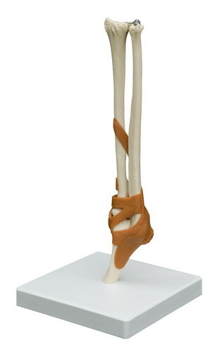 Denna modell är ett praktiskt och visuellt verktyg för att förstå och förklara armbågsledens anatomi och rörelseomfång.