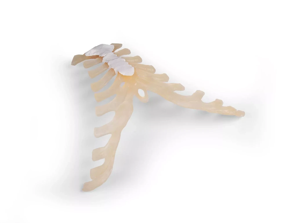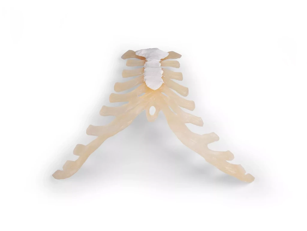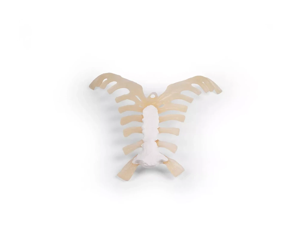 Högkvalitativ avgjutning av bröstbenet (sternum) från en vuxen man. Modellen visar detaljerat benets struktur och är ett utmärkt hjälpmedel för anatomiundervisning, medicinsk utbildning och kliniska demonstrationer.