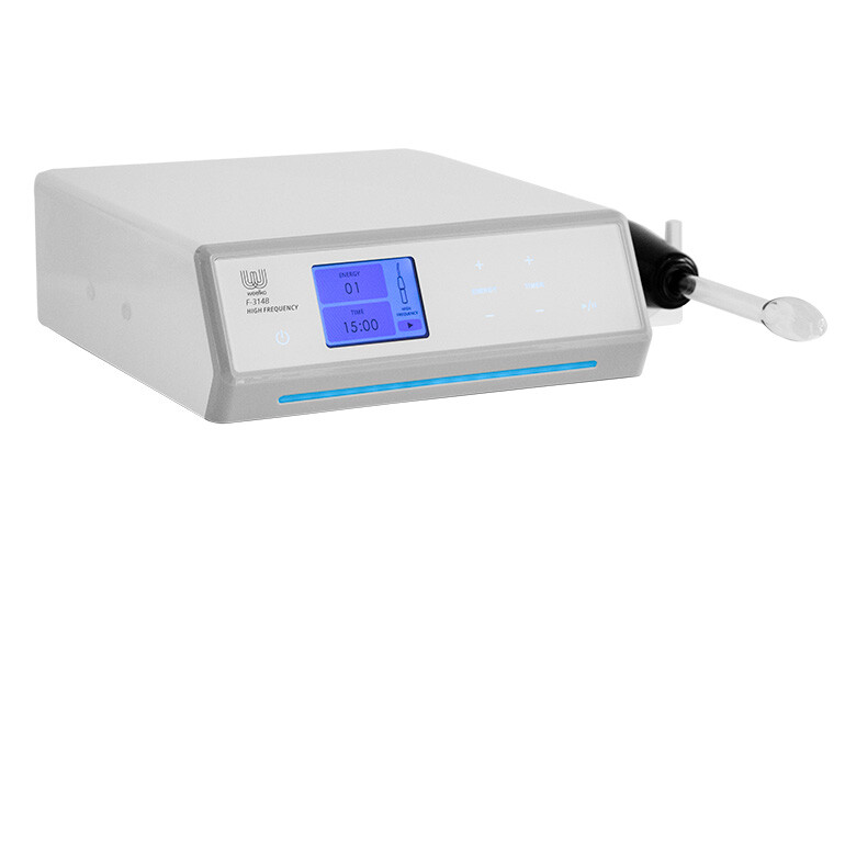 En högfrekvensapparat för ansiktsbehandlingar som är utformad för att anpassas efter olika estetiska protokoll. Apparaten stimulerar blodcirkulationen, aktiverar körtelfunktioner, främjar penetration av aktiva ingredienser och bidrar till hudens renhet och hälsa.
